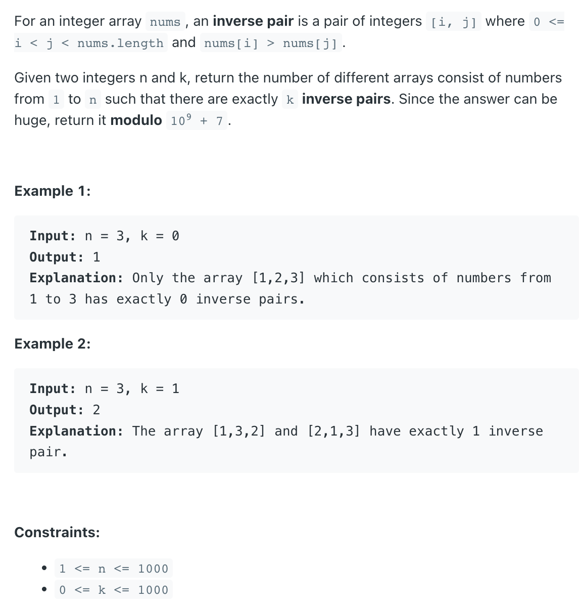K Inverse Pairs Array - LeetCode