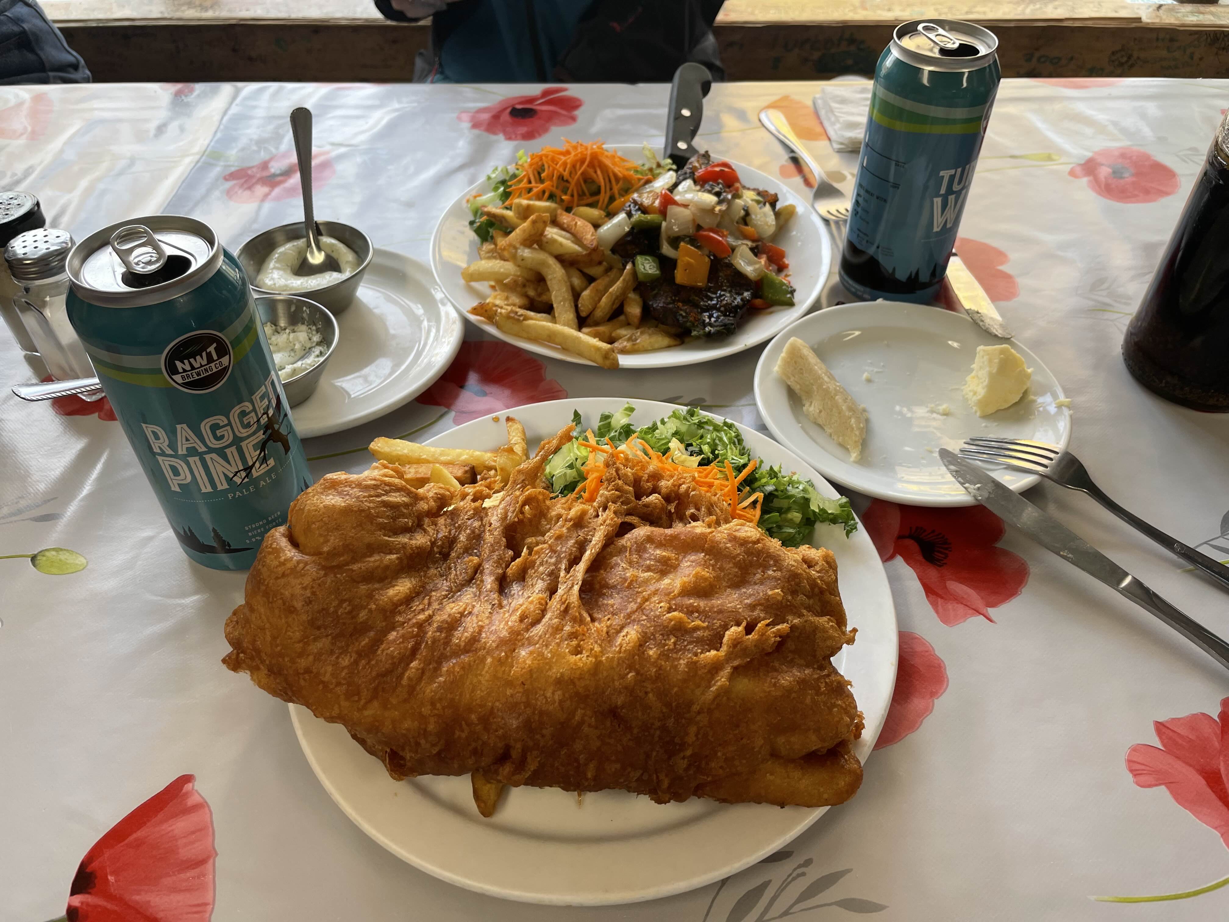 deep fried whitefish랑 buffalo ribeye steak를 주문했는데 생선 튀김은 정말 거대했다.